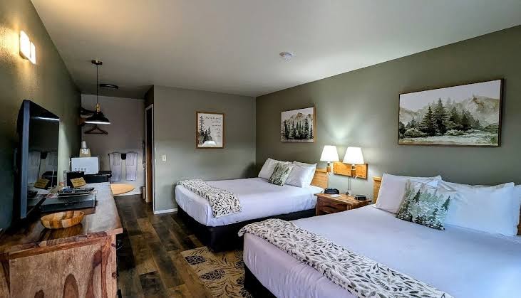 This place was fantastic. They have odd front desk operational hours. Bear spray is free to borrow. The room had two queen beds. Both of which were comfortable with four pillows each. Back to old school hotel rooms with an AC that worked amazingly and cooled down the room. Black out curtains that kept the room dark. Great shower pressure. Sink on the outside which was wonderful. TV, fridge and microwave. Cheap and 20 minutes outside the park. Would recommend staying here. 10/10.